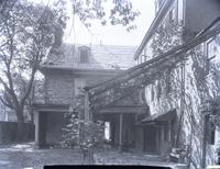Detailied rear view of Grumblethorpe, showing a water pump and the large arbor attached to the rear ell extension to support a grape vine. Built in 1744 by Philadelphia wine merchant John Wister. His house was the first in Germantown built solely for summer residency and greatly exceeded the dimensions of the homes around it, giving it the nickname "Wister's Big House."